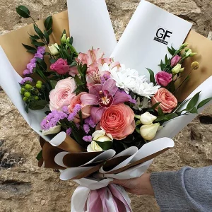 Цветочная элегантность - букет-новинка с орхидеей, розами и альстромериямиот 6 095 руб. 6 262 руб.Купить