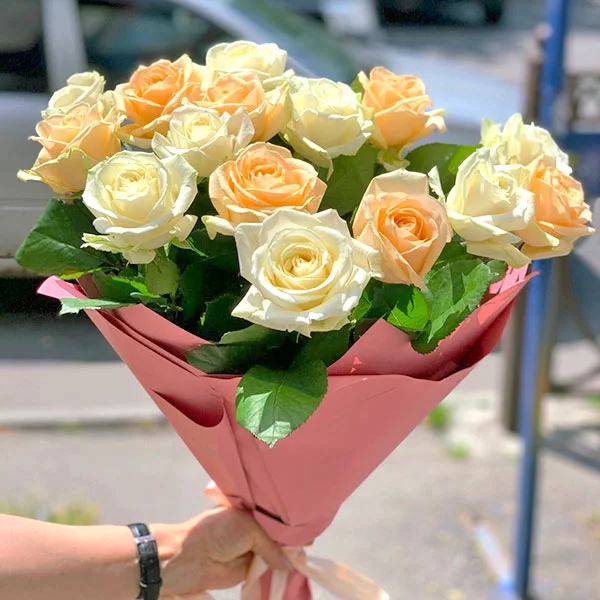 Роза кремовая (количество, выбранное Вами) 50-60 см., целлофан, лента.
